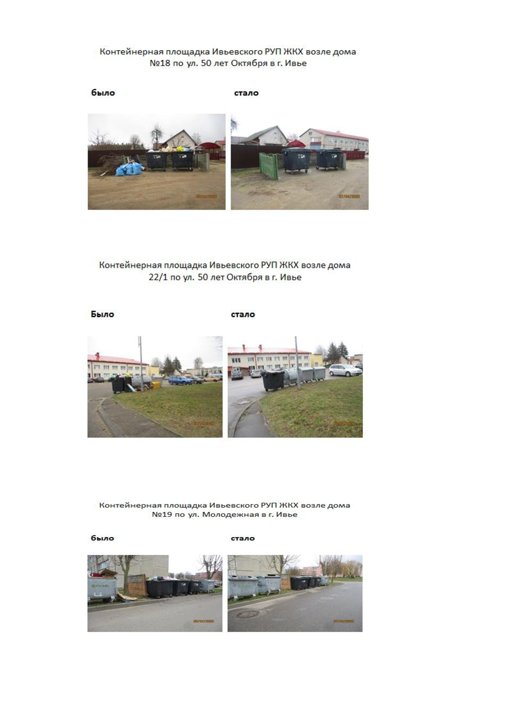 06-07.04.2026 года    специалистами Ивьевского районного ЦГЭ проведены оценочные мероприятия содержания площадок для временного хранения отходов, расположенных в районе многоэтажной жилой застройки г. Ивье, и прилегающей